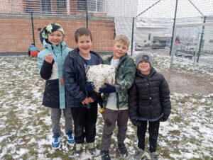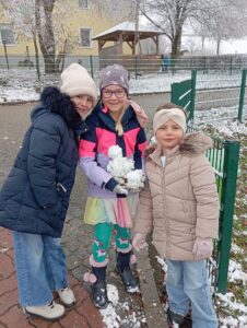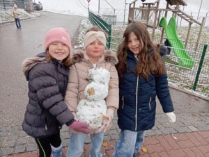 Ein besonderes Highlight war natürlich wieder der erste Schnee, der auch unseren Schulhof angezuckert hat. Mit Begeisterung formten die Kinder kleine Schneebälle und bauten voller Stolz die ersten Schneemänner dieses Winters. Die kurze Winterzauber-Pause wurde also intensiv genutzt, bevor es wieder zurück in den Unterricht ging.